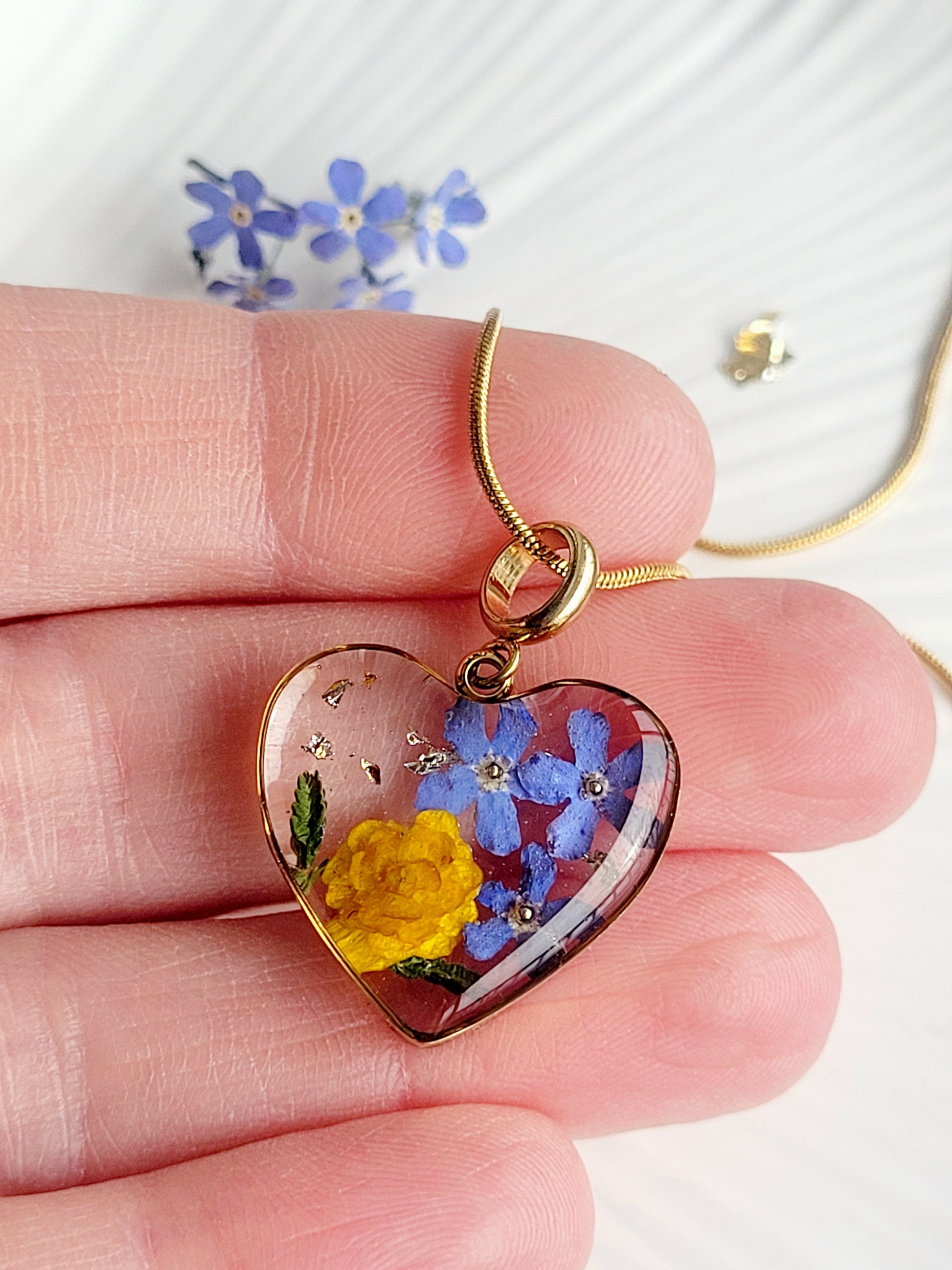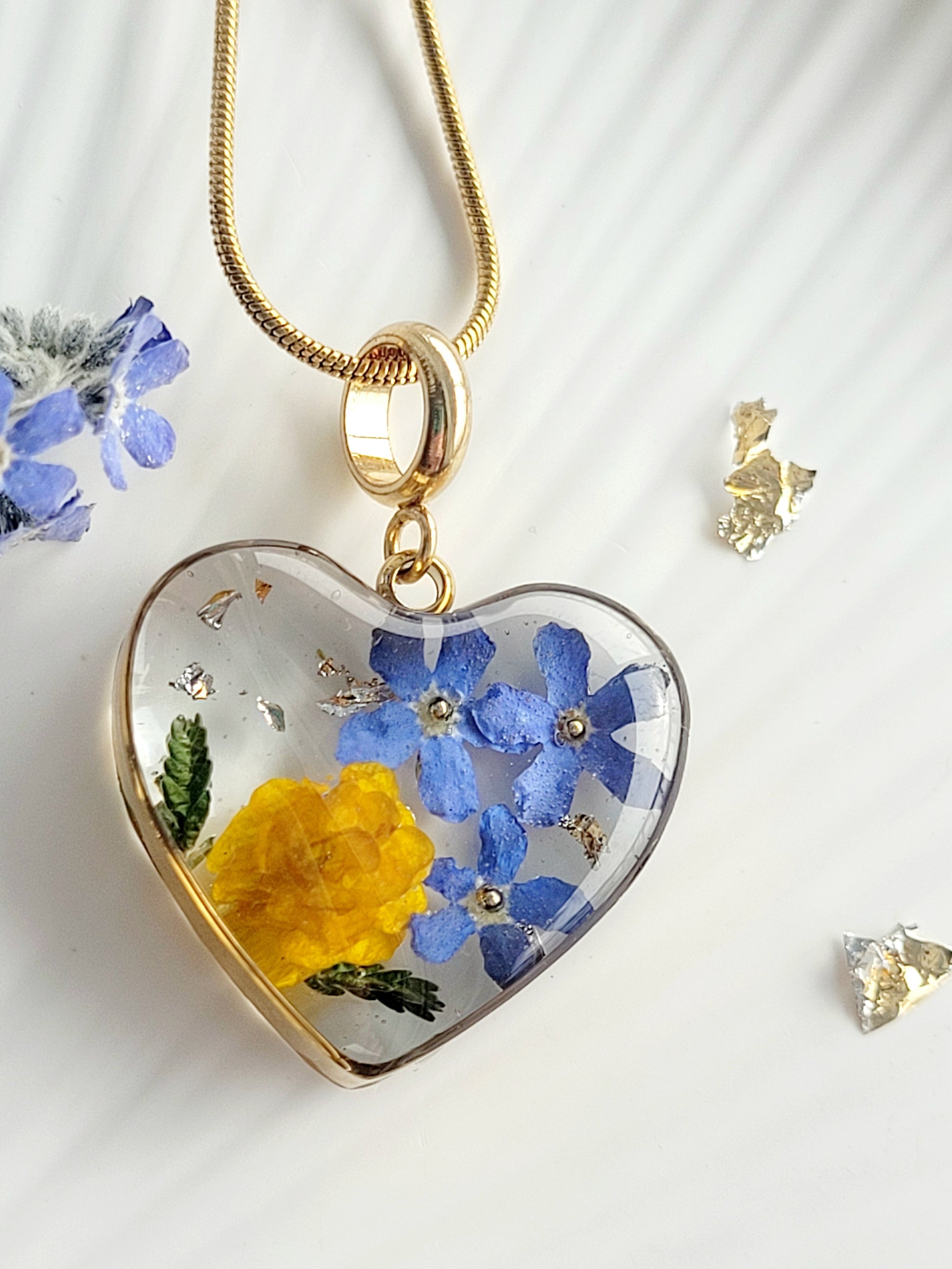 Botanical heart necklace with real genuine butter cup flower. Mothers day gift. Giftf or her. Unique Gift. Heart flower charm Cottage core heart 3D necklace