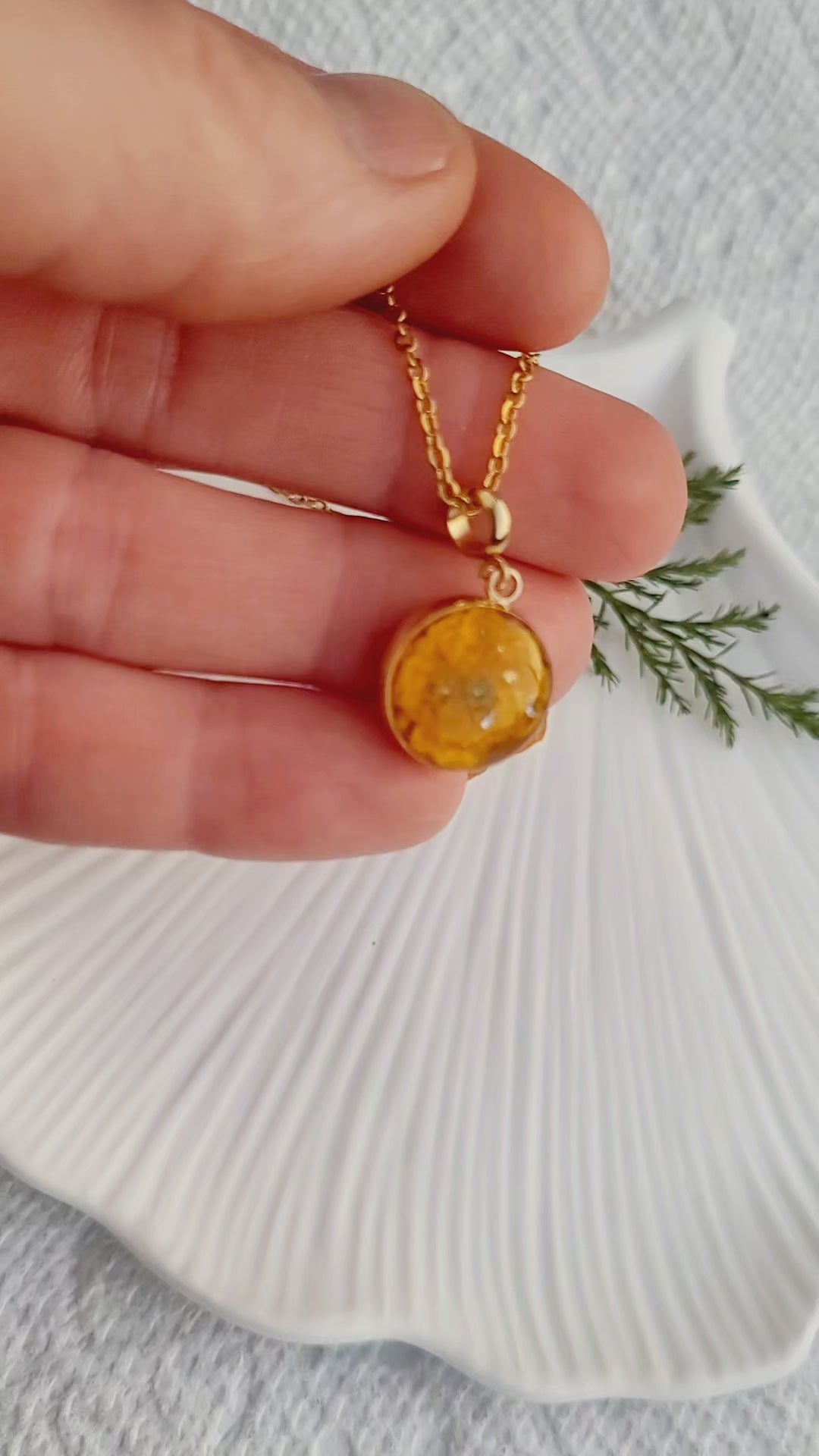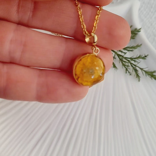 Delicate real butter cup flower Necklace – Minimalist jewelry.